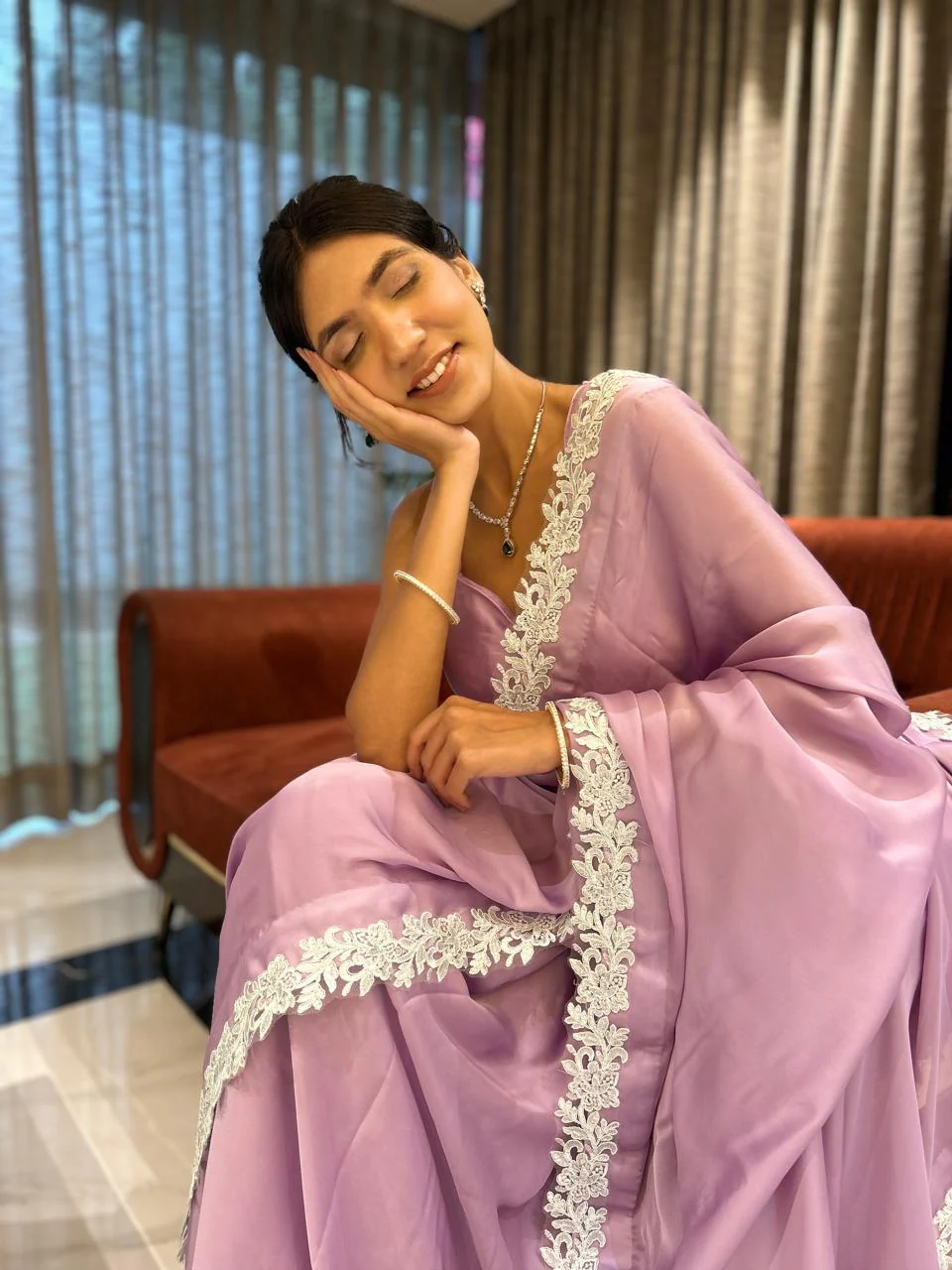 Be the first to review “Deepika Padukone Inspired Lavender Satin Saree”