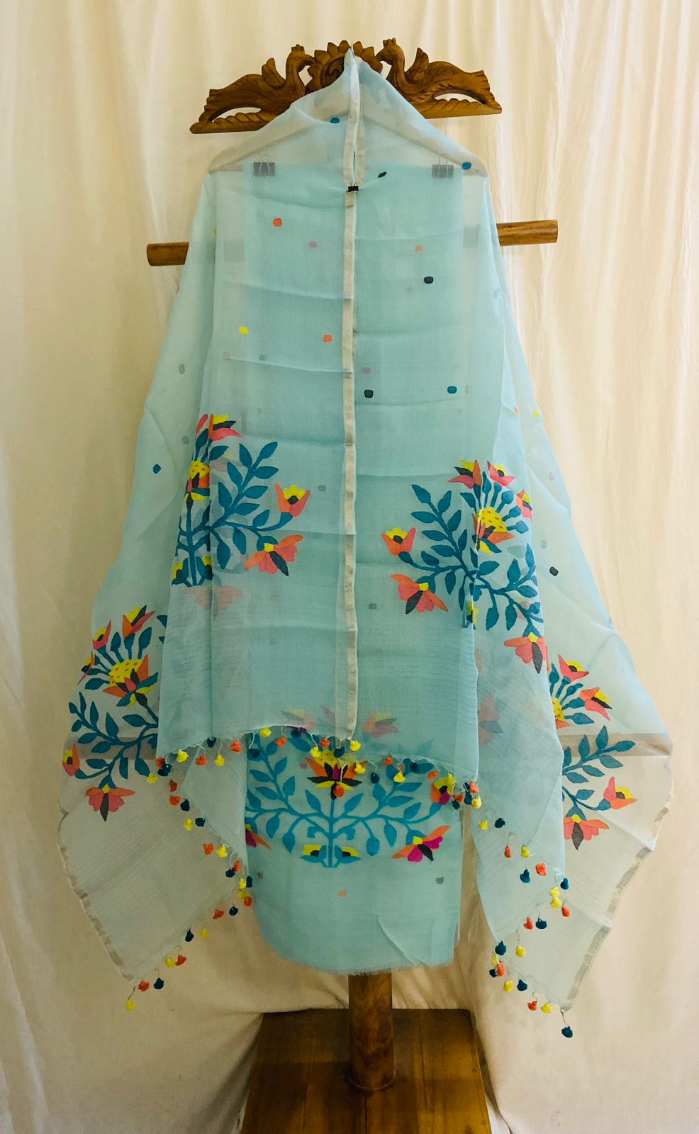 Wrap yourself in the art of Jamdani 🌸✨ Handwoven elegance meets modern charm in our collection – intricate embroidery, delicate tassels, and timeless style for the modern woman.”