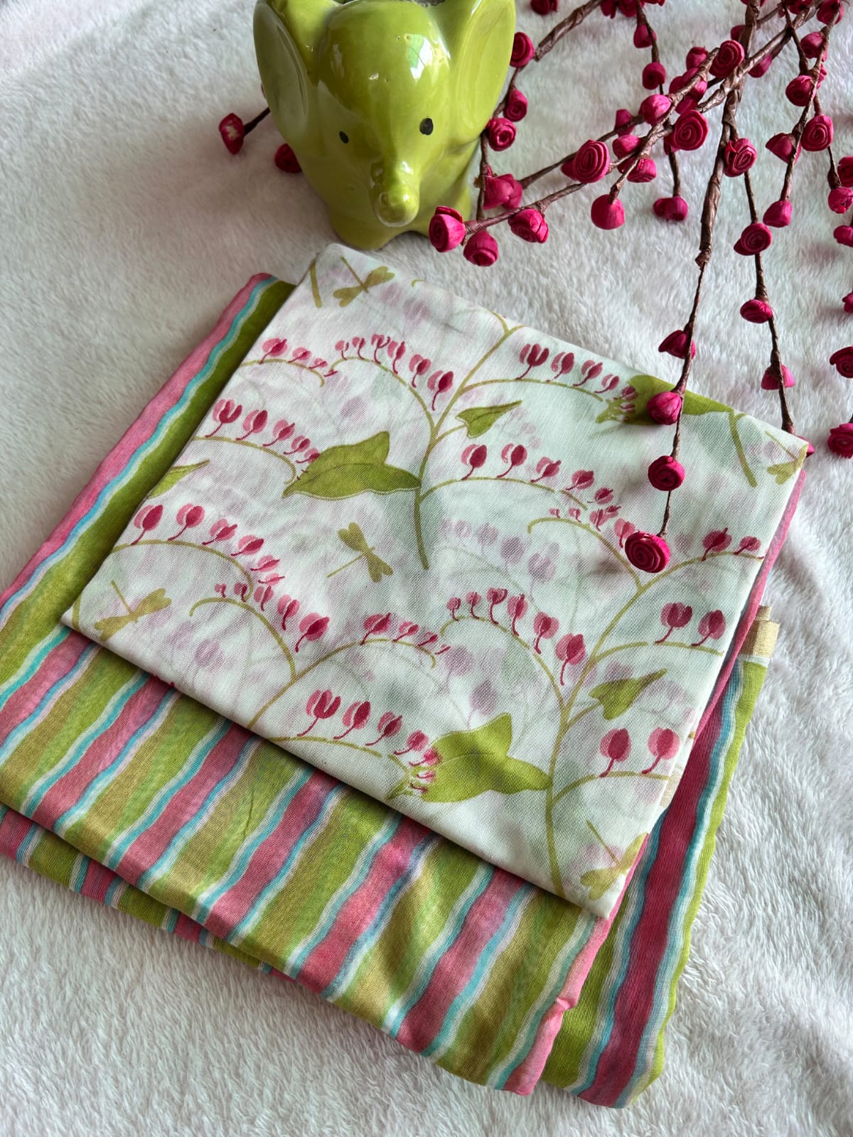 Add elegance to your ethnic wardrobe with this beautiful Light Blue Organza Printed Saree. Crafted from soft and lightweight organza fabric, this saree features delicate floral and peacock prints that give it a graceful and classy look. The golden border enhances its traditional appeal, making it perfect for festive occasions, parties, and family gatherings.